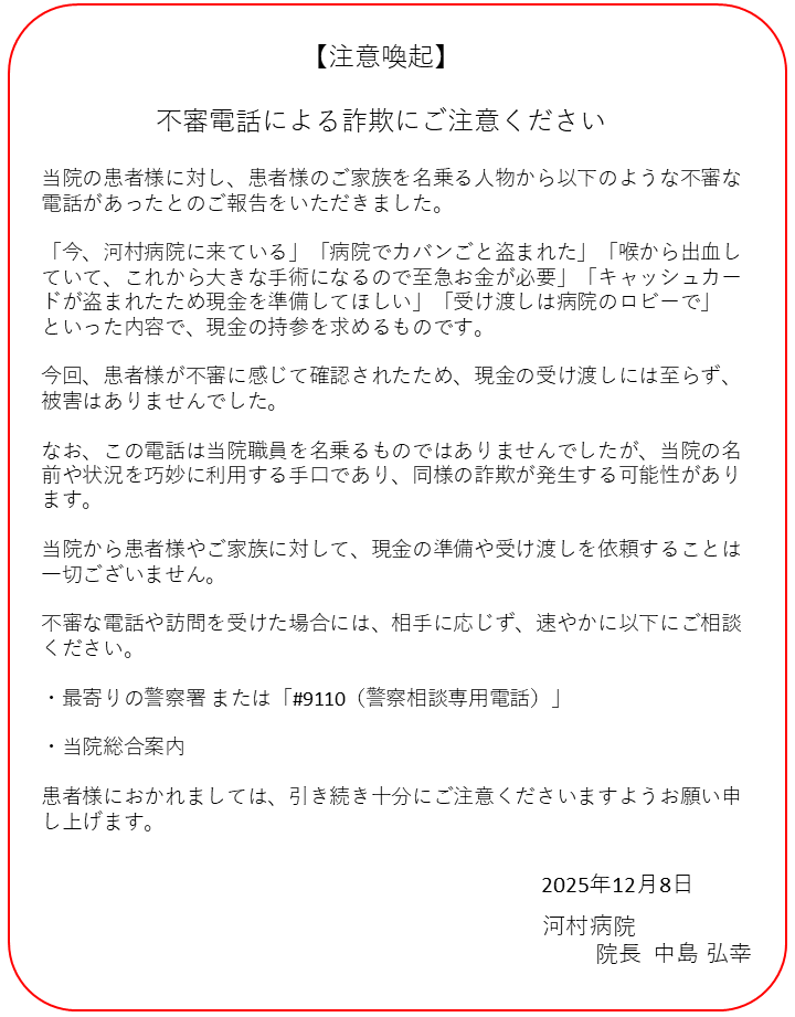 3.  >  【注意喚起】不審電話による詐欺にご注意ください