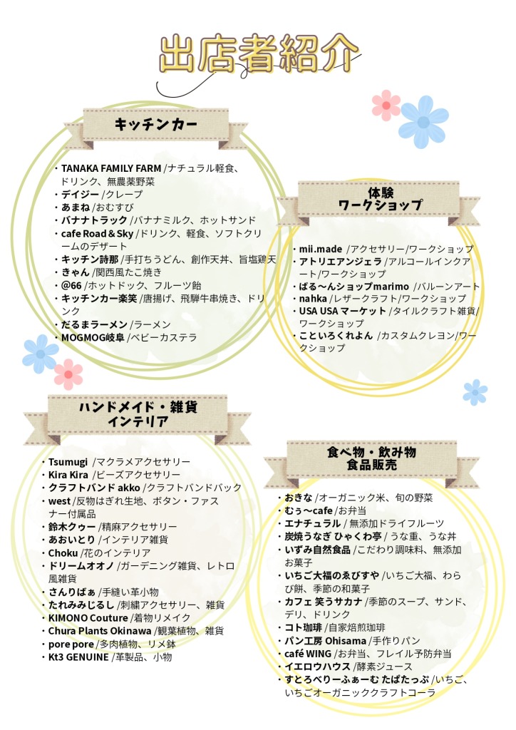 ※当日の状況(天候・出店者の都合など)により、イベント内容が一部変更または中止となる場合がございます。