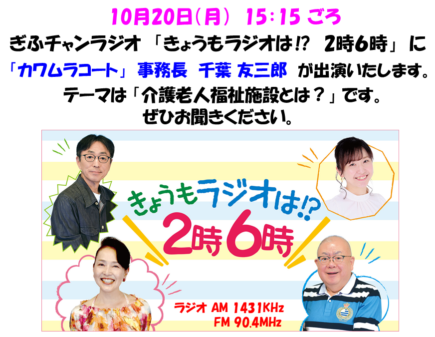 10月20日(月)放送 ぎふチャンラジオに カワムラコート 事務長 千葉友三郎 が出演いたします