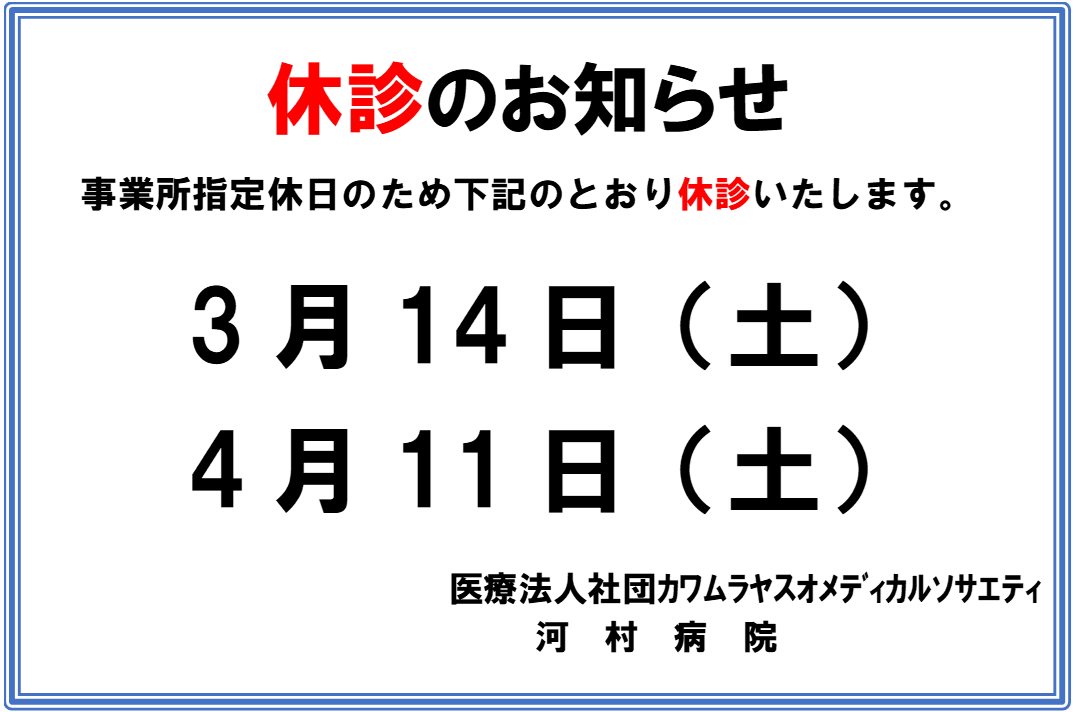 3.  >  令和8年3月・4月 指定休診日のお知らせ